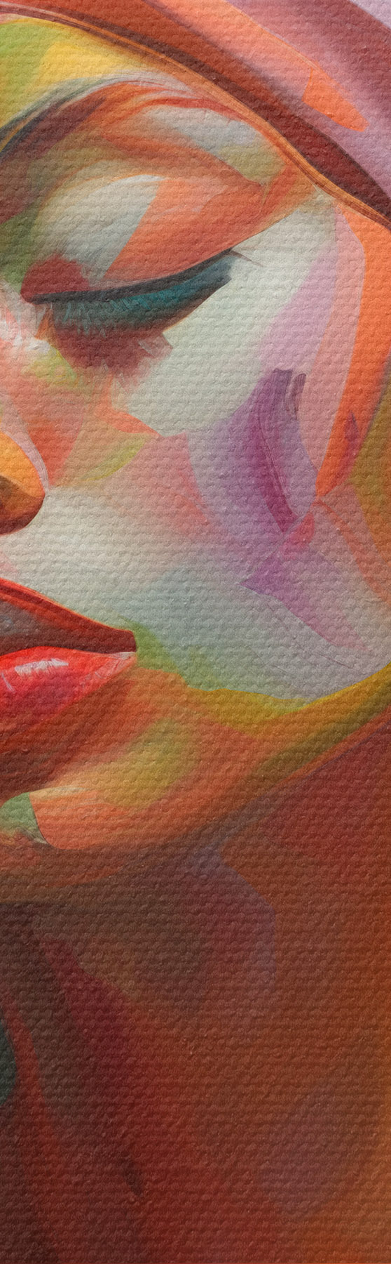 Selle lõuendi peenike niidipunus meenutab professionaalse kunstniku lõuendi pinda.