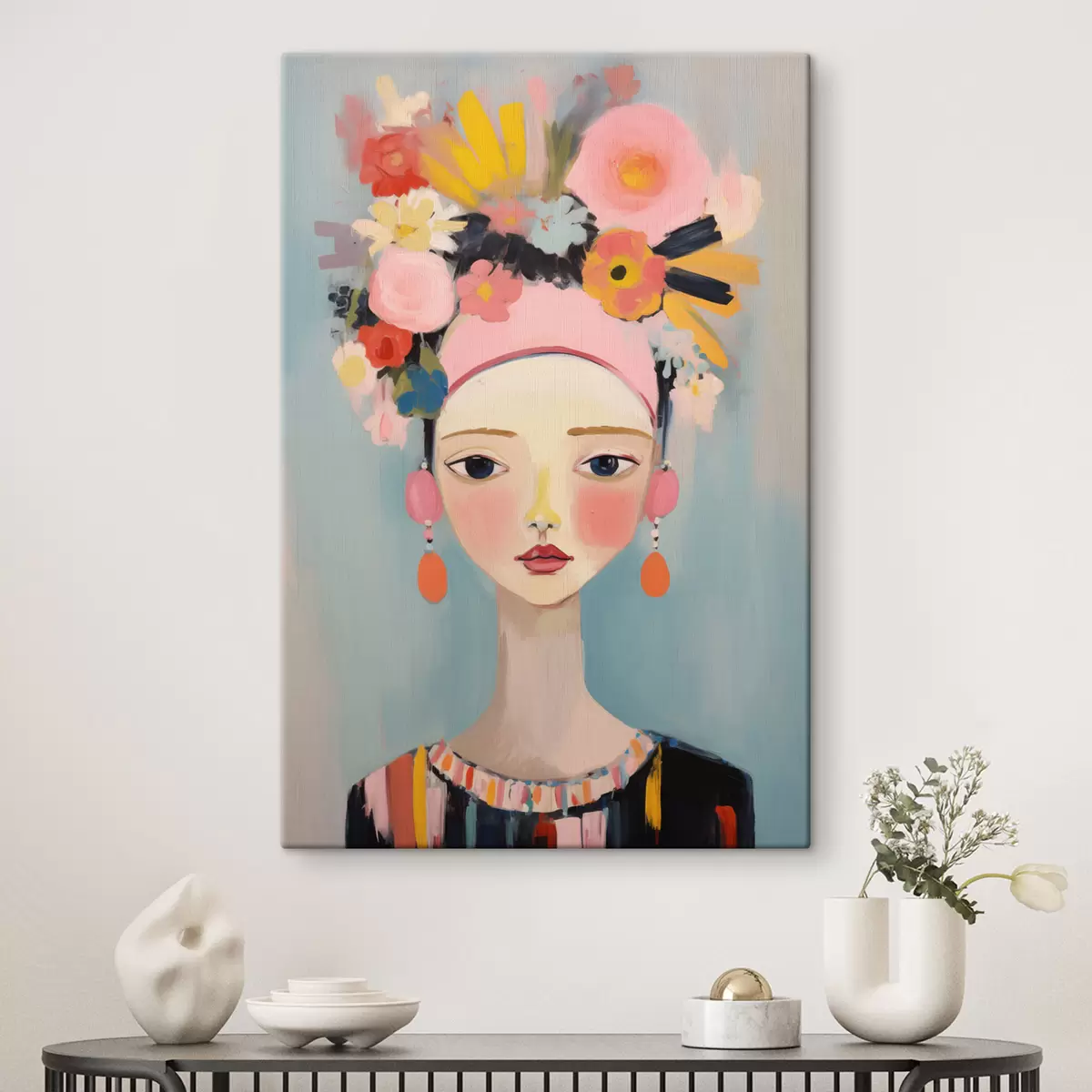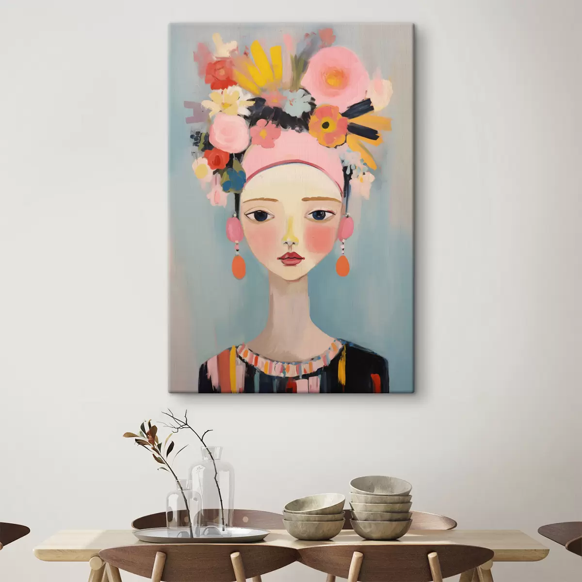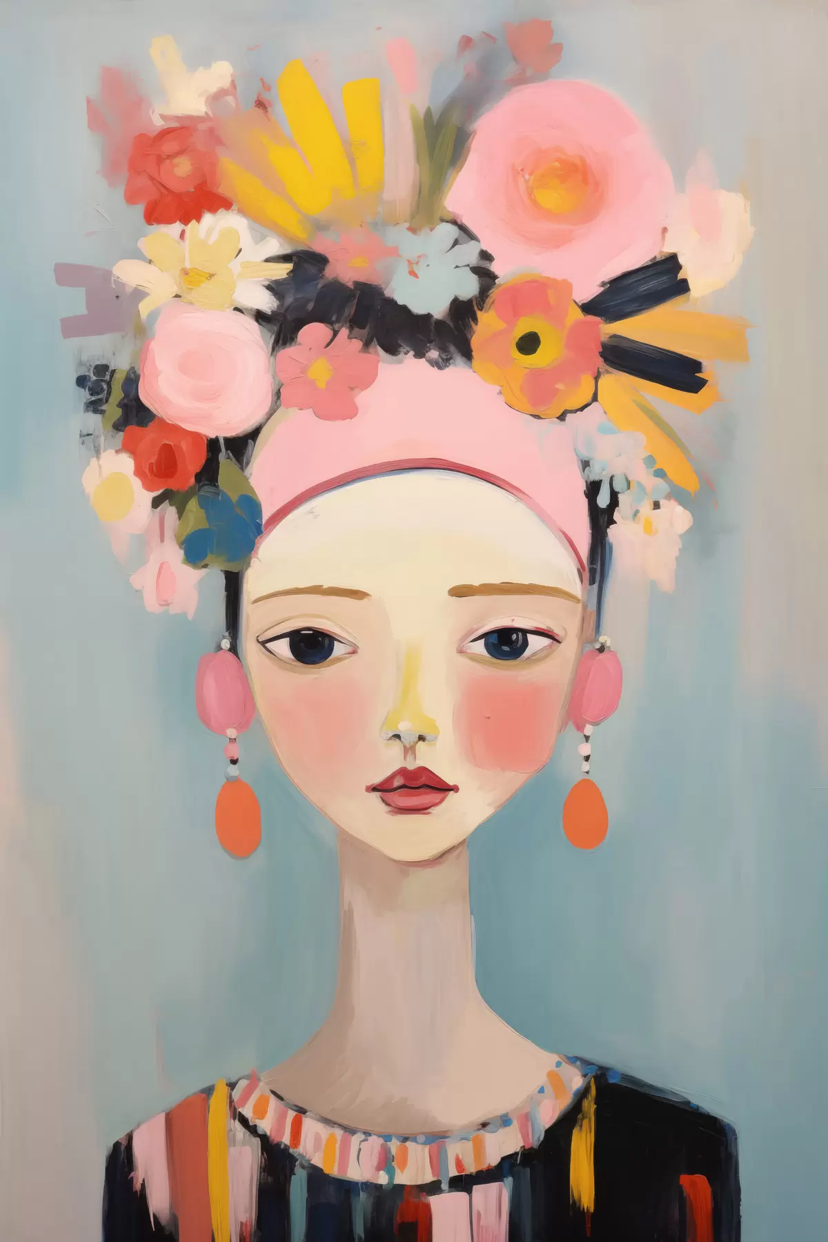 Maalid Portree naisest, kellel on juustes lilled, abstraktne stiil Nr s48936