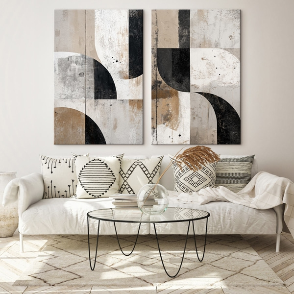 Abstraktsed kõverad kollakasoranžide ja beežide aktsentidega