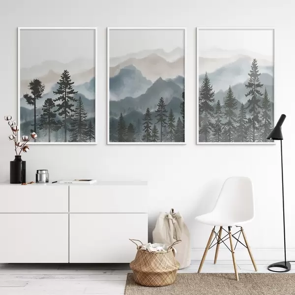 Plakat Rahulikud mäed ja siluetina paistvad puud d00244