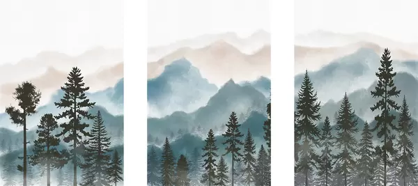 Plakat Rahulikud mäed ja siluetina paistvad puud d00244