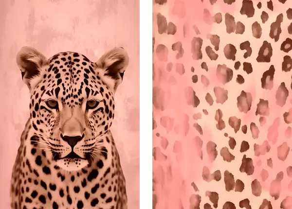 Poster Gepardi portree, abstraktne muster leopardimustriga roosa taustal Nr d00402