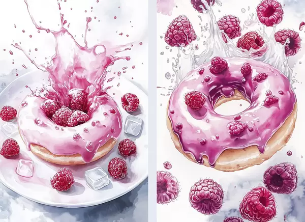 Plakat Maitsvad akvarellistiilis donutsid vaarikatega, roosa värvi d00412