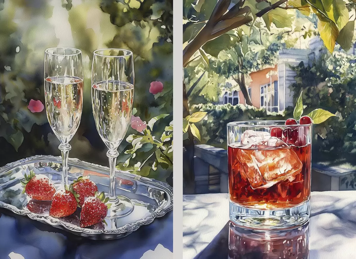 Poster Maitsvad kokteilid marjadega, akvarellistiil, esteetika, suvine loodus Nr d00415