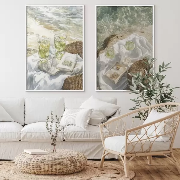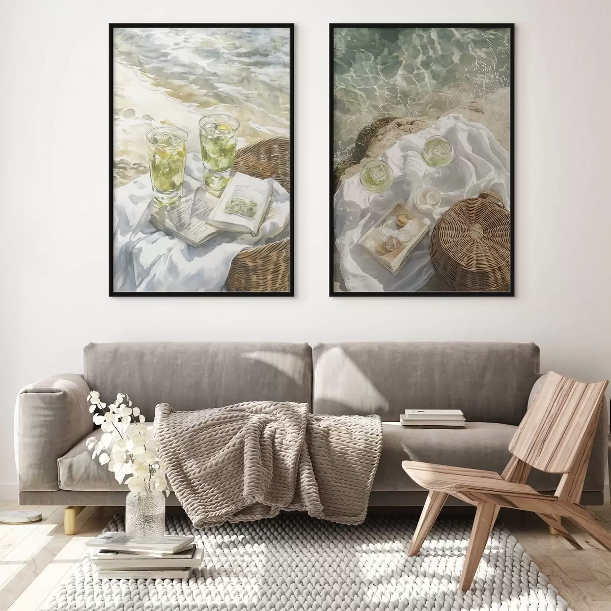 Poster Kokteilid rannas, akvarellistiilis joonistus, ookean, suvine piknik Nr d00417