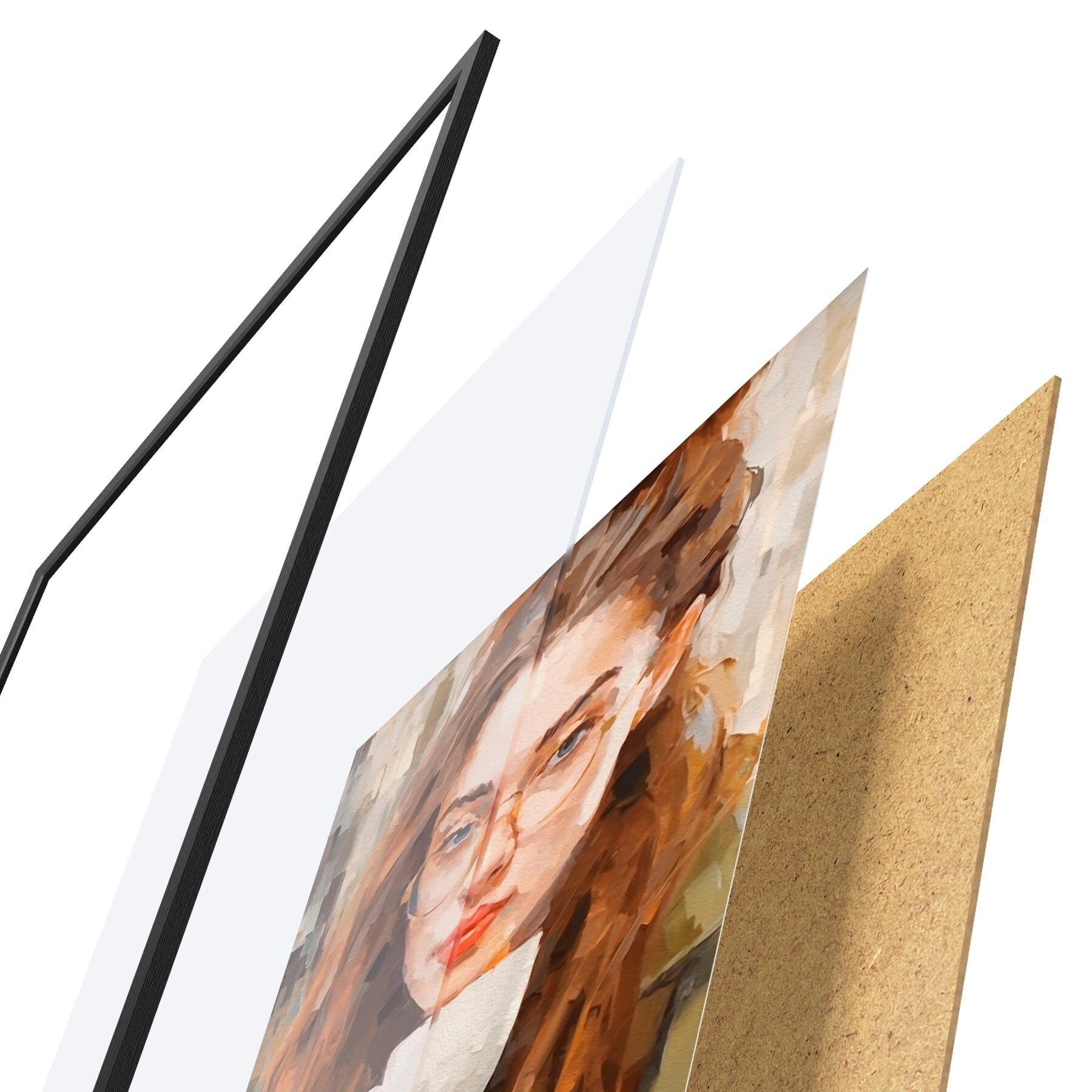 Plakat koosneb raamist, pleksiklaasist, trükitud pildist ja puitlaastplaadist alusplaadist. Tänu tagaküljel olevatele kinnitustele saab plakati kohe seinale riputada.