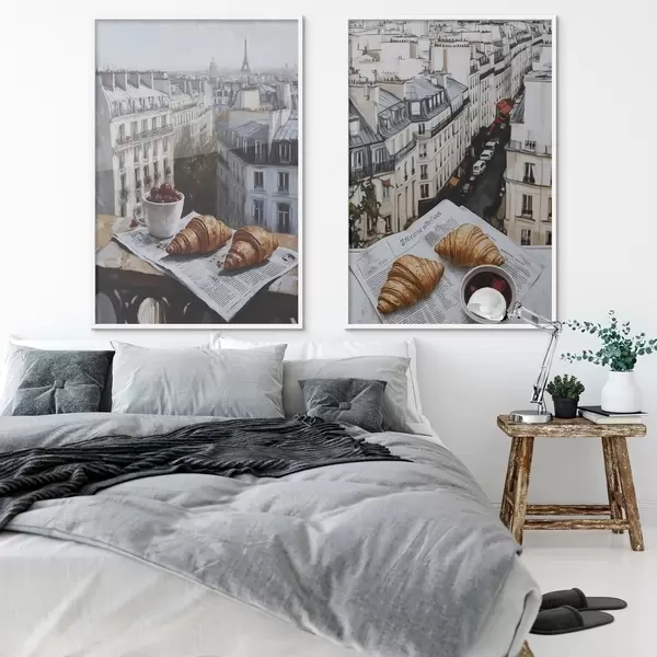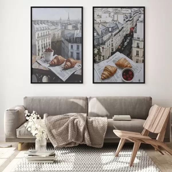 Poster Linnavaade Pariisi rõdult, Eiffeli torn, maasikad, kohv, päevik Nr d00445
