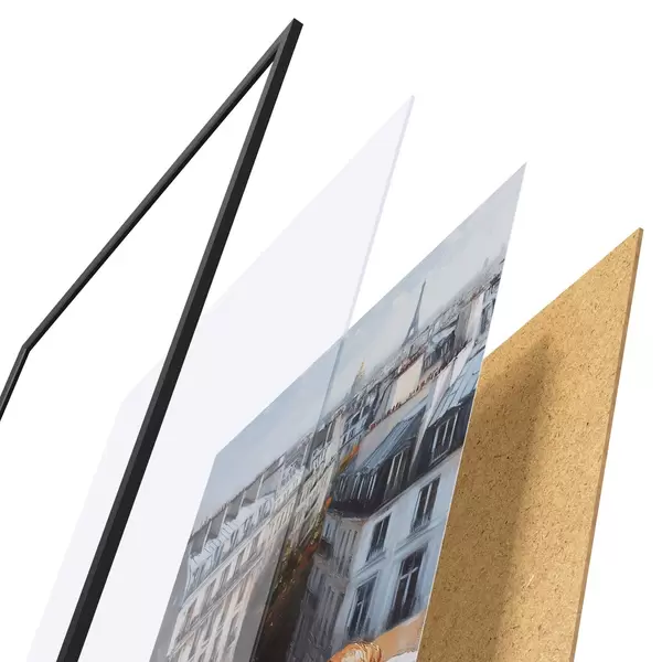 Plakat koosneb raamist, pleksiklaasist, trükitud pildist ja puitlaastplaadist alusplaadist. Tänu tagaküljel olevatele kinnitustele saab plakati kohe seinale riputada.