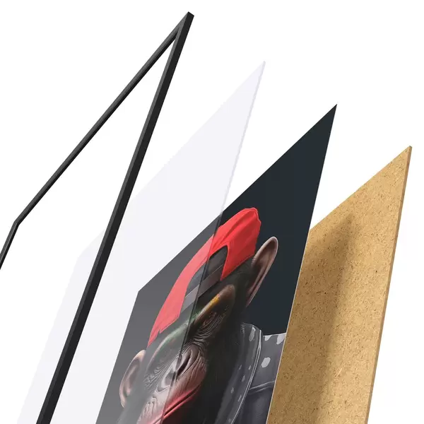 Plakat koosneb raamist, pleksiklaasist, trükitud pildist ja puitlaastplaadist alusplaadist. Tänu tagaküljel olevatele kinnitustele saab plakati kohe seinale riputada.