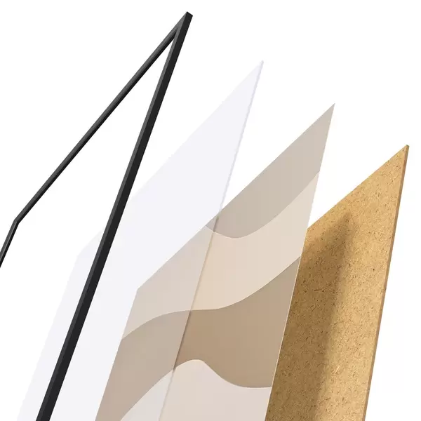 Plakat koosneb raamist, pleksiklaasist, trükitud pildist ja puitlaastplaadist alusplaadist. Tänu tagaküljel olevatele kinnitustele saab plakati kohe seinale riputada.