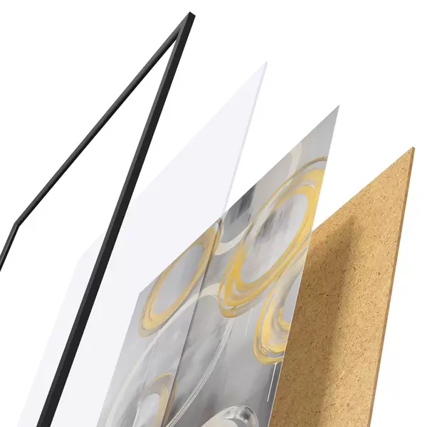 Plakat koosneb raamist, pleksiklaasist, trükitud pildist ja puitlaastplaadist alusplaadist. Tänu tagaküljel olevatele kinnitustele saab plakati kohe seinale riputada.