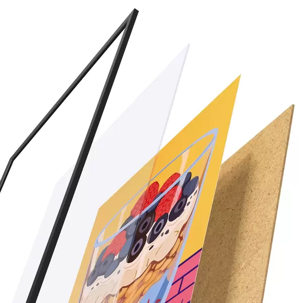 Plakat koosneb raamist, pleksiklaasist, trükitud pildist ja puitlaastplaadist alusplaadist. Tänu tagaküljel olevatele kinnitustele saab plakati kohe seinale riputada.