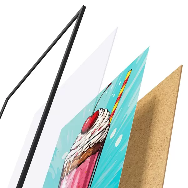 Plakat koosneb raamist, pleksiklaasist, trükitud pildist ja puitlaastplaadist alusplaadist. Tänu tagaküljel olevatele kinnitustele saab plakati kohe seinale riputada.
