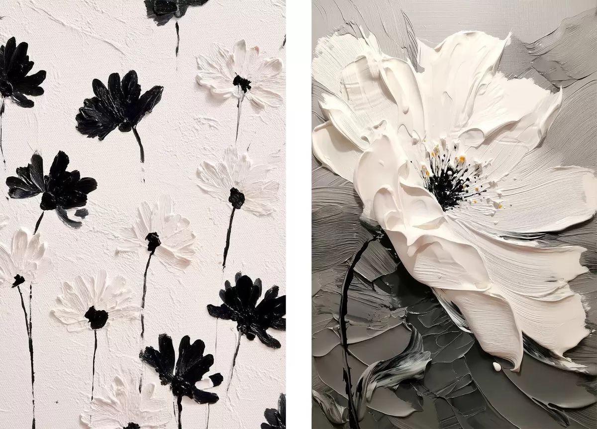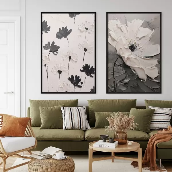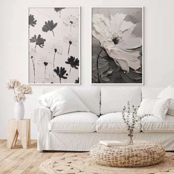 Plakat Diptühhon valgete ja mustade lilledega kaasaegses stiilis d00571
