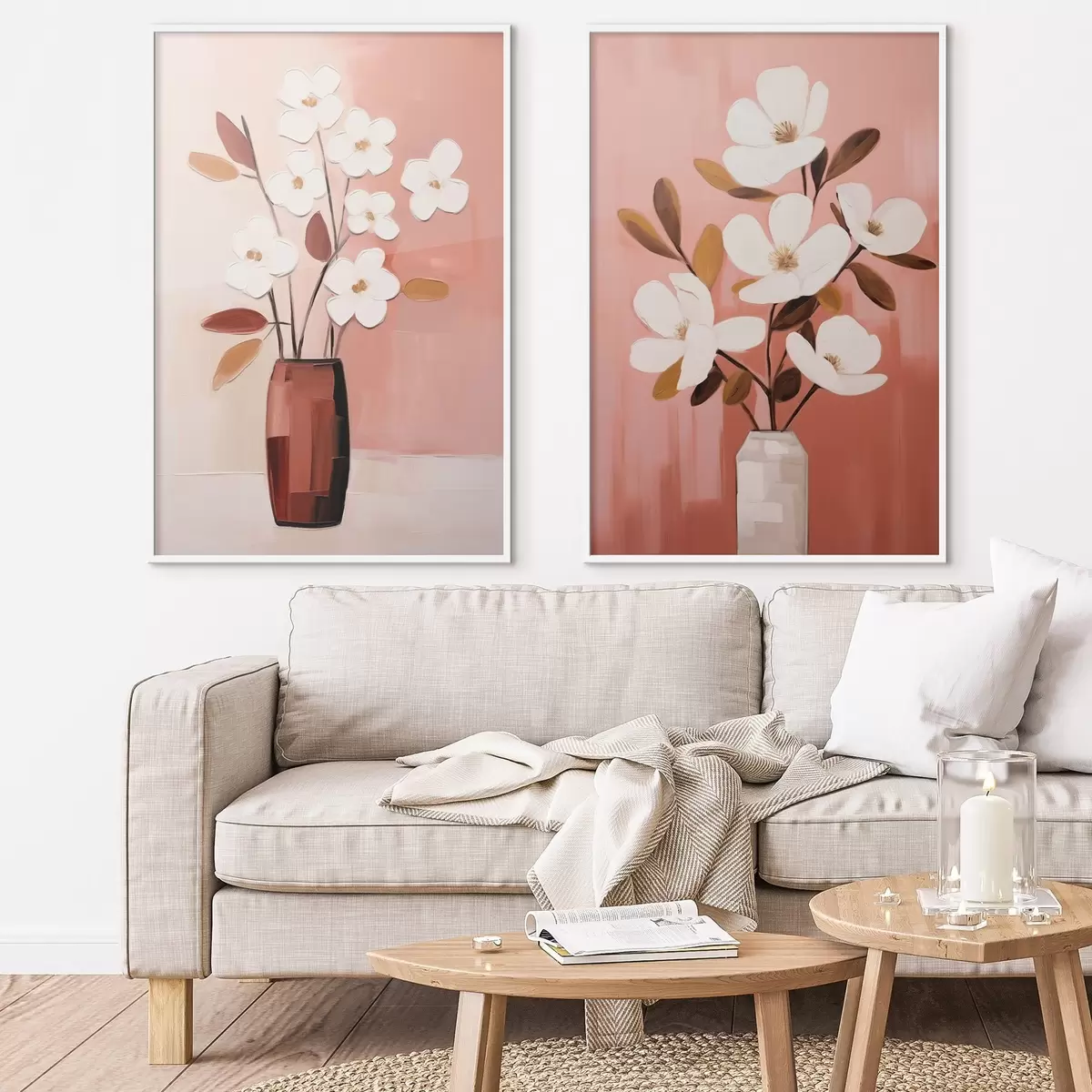Poster Kompositsioon kontrastsete vaaside ja tekstuursete valgete lilledega Nr d00575