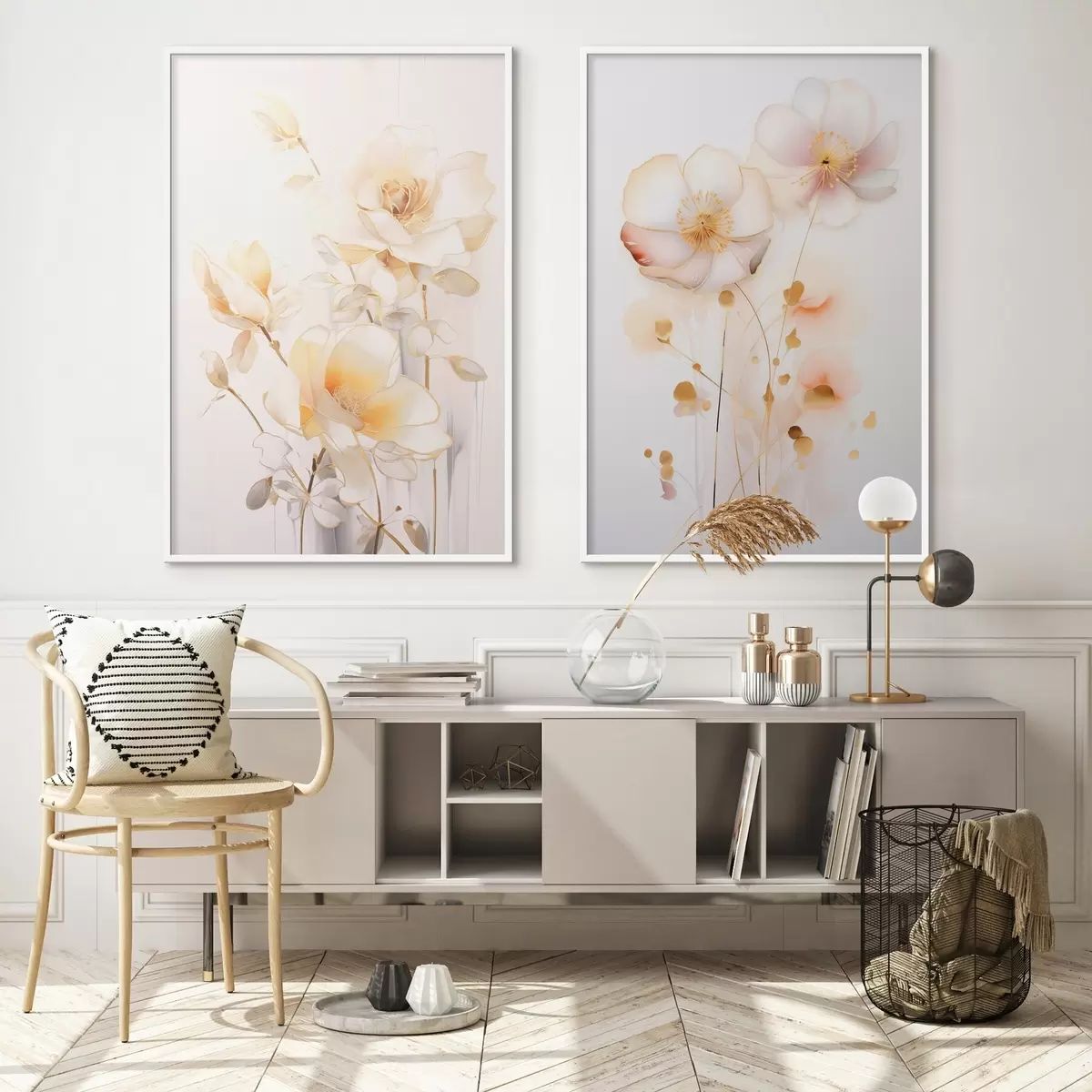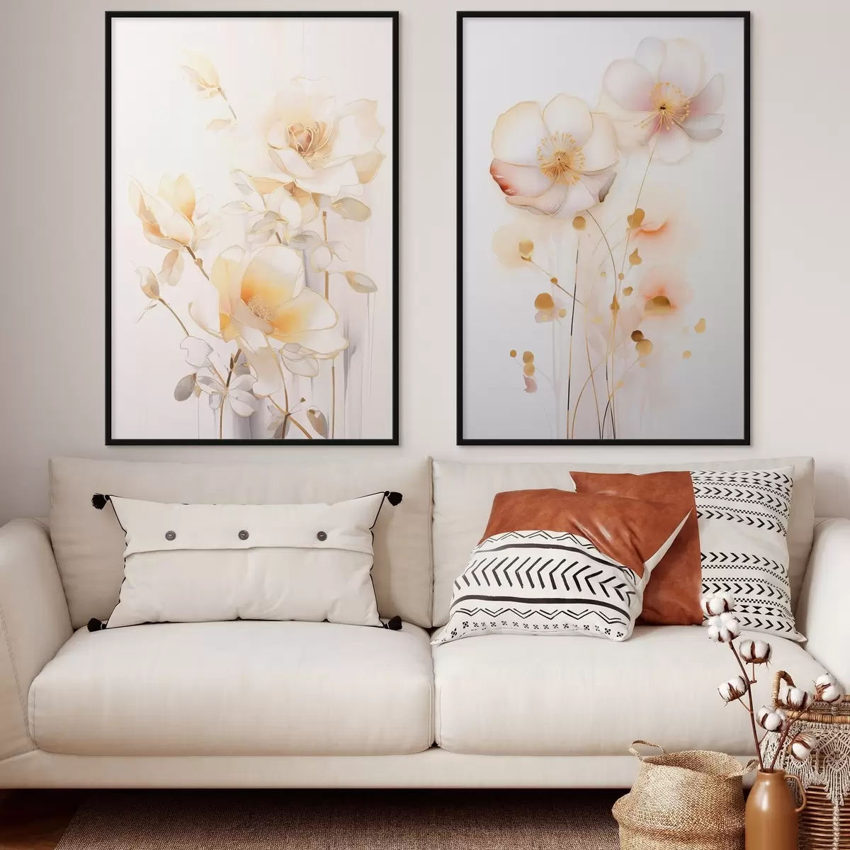 Poster Lillede duett: õrn diptühhon akvarellistiilis elegantsete joontega Nr d00577