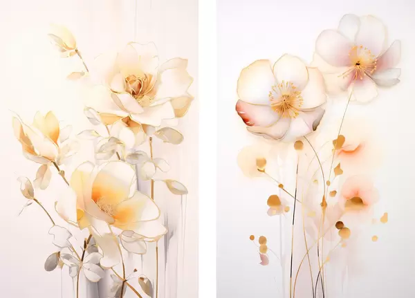 Poster Lillede duett: õrn diptühhon akvarellistiilis elegantsete joontega Nr d00577