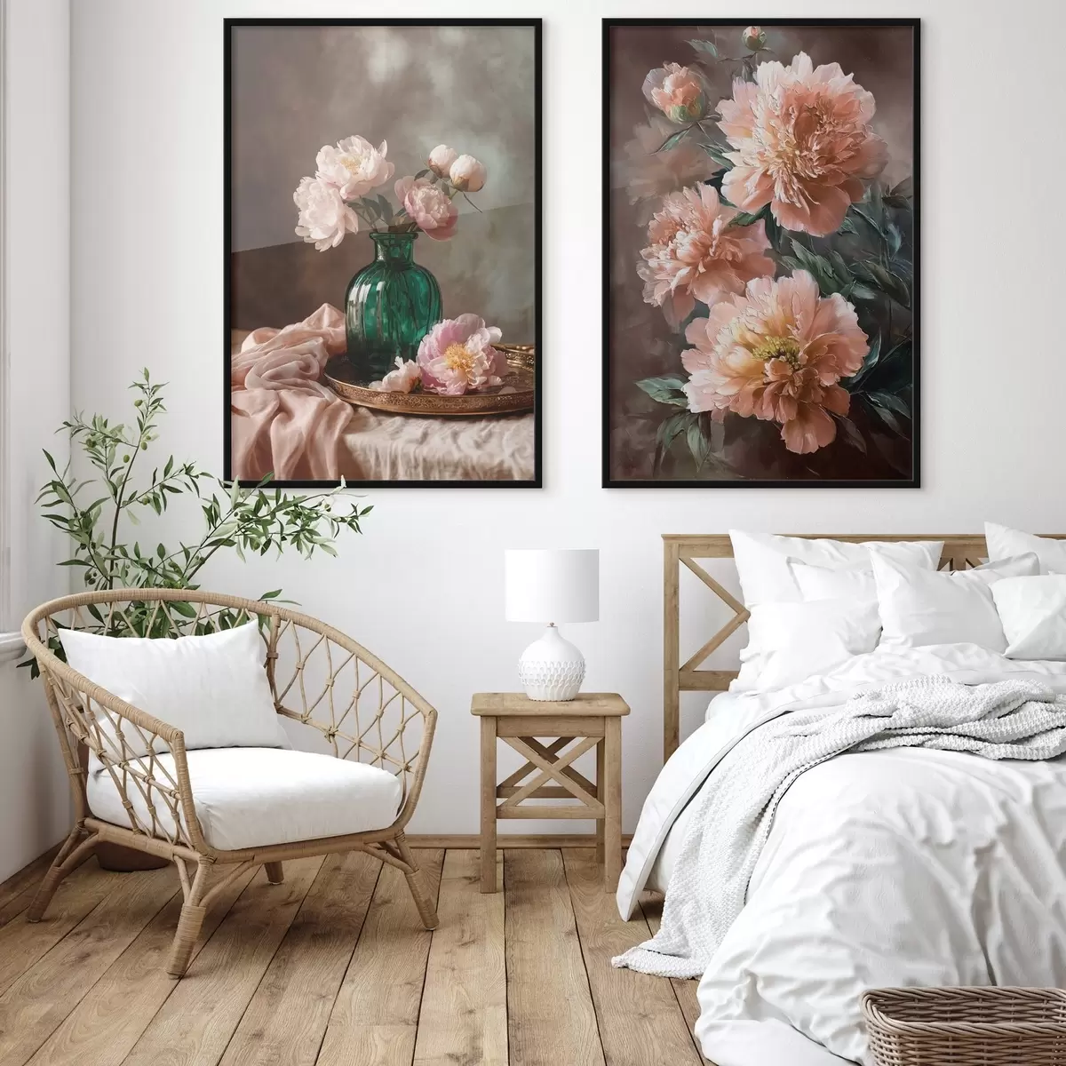 Plakat Paaris kompositsioon roosa puneedega vaasis ja lõuendil d00578