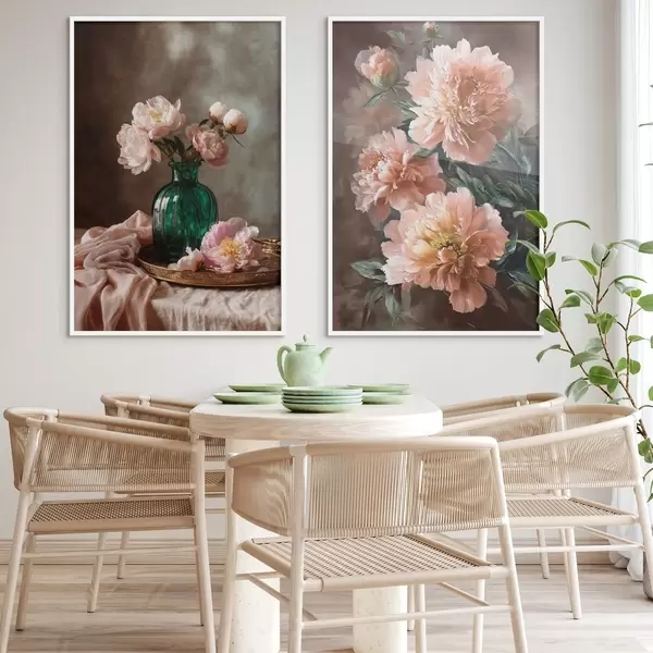 Poster Paaris kompositsioon roosa puneedega vaasis ja lõuendil Nr d00578