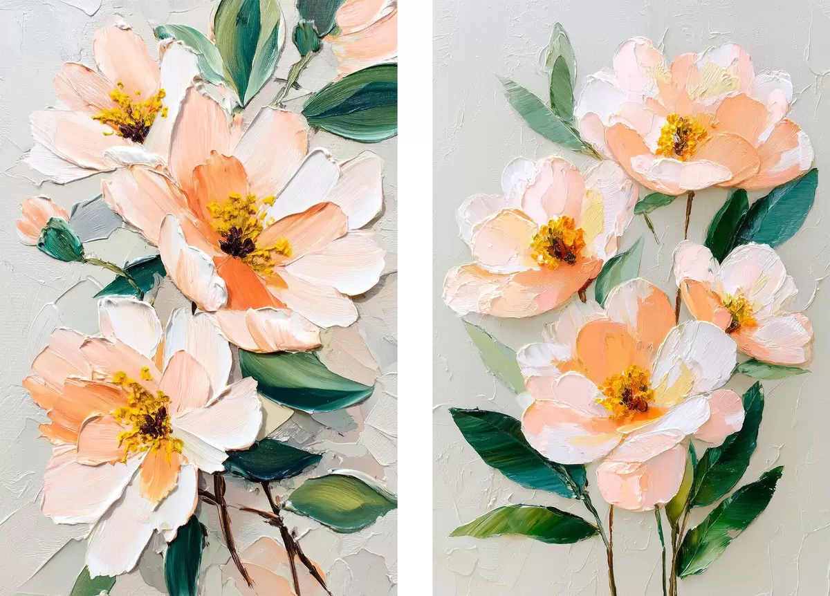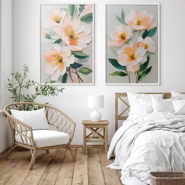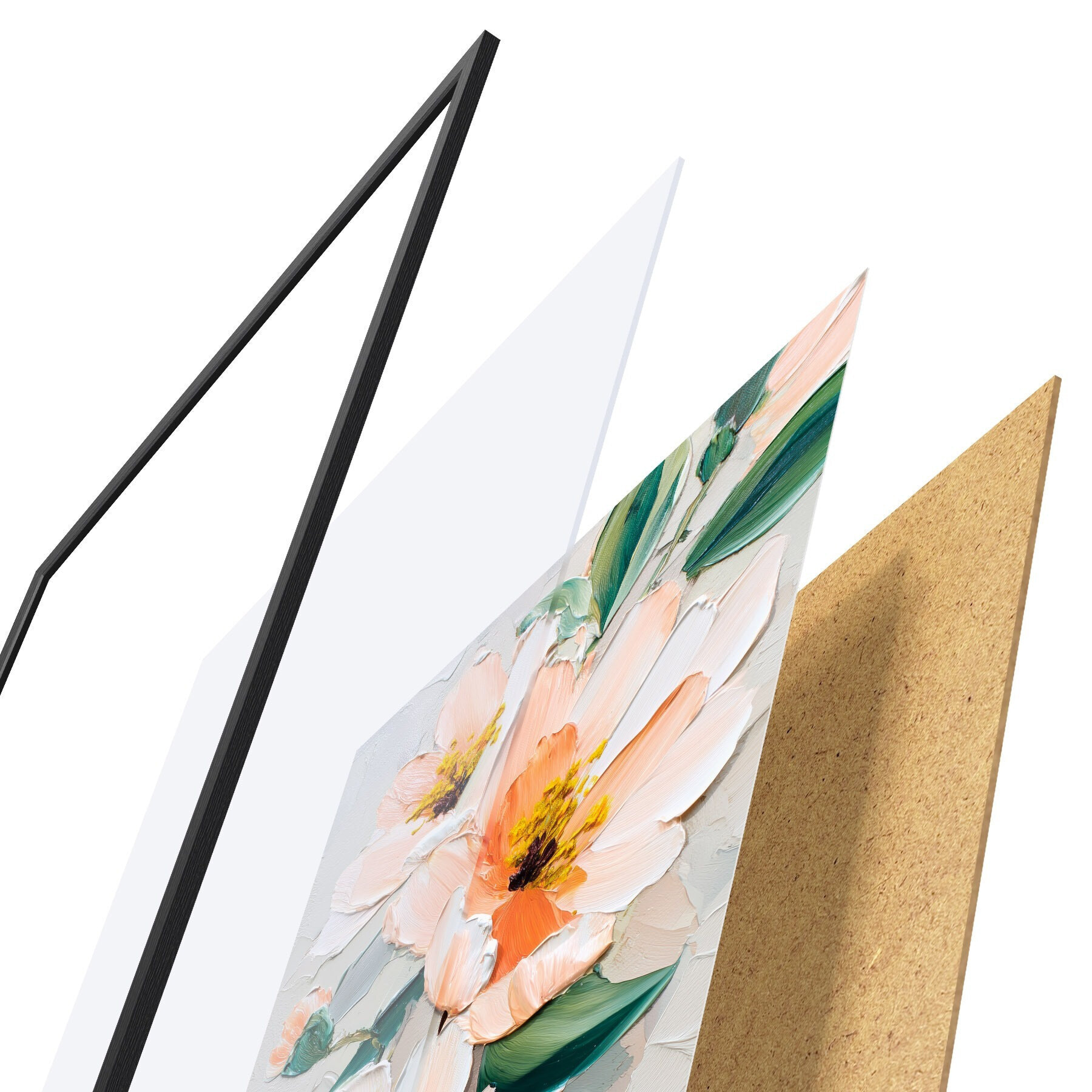 Poster Impasto-stiilis maal, mis ühendab suure kimpu ja üksikuid lilli Nr d00579