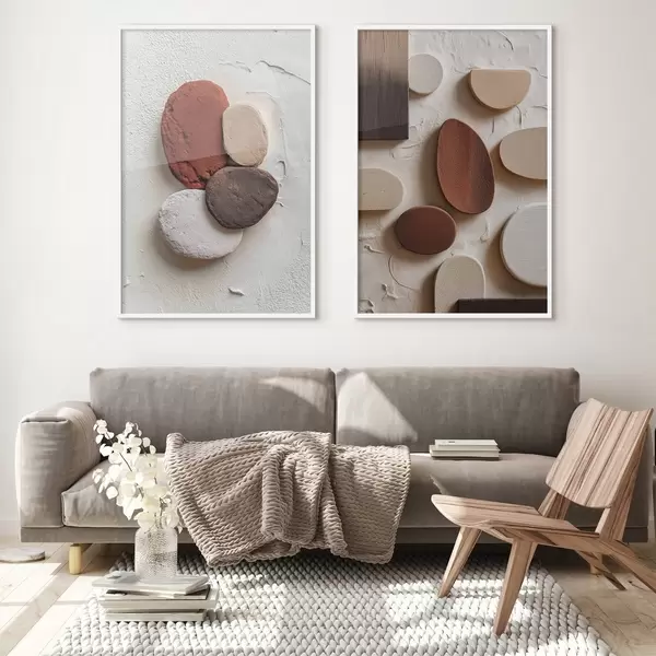 Poster Abstraktsed kompositsioonid, millel on ruumilised geomeetrilised kujundid tekstuurilisel taustal Nr d00597
