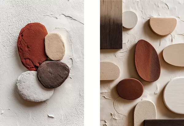 Poster Abstraktsed kompositsioonid, millel on ruumilised geomeetrilised kujundid tekstuurilisel taustal Nr d00597