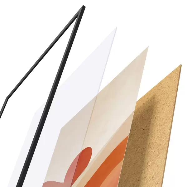 Plakat koosneb raamist, pleksiklaasist, trükitud pildist ja puitlaastplaadist alusplaadist. Tänu tagaküljel olevatele kinnitustele saab plakati kohe seinale riputada.