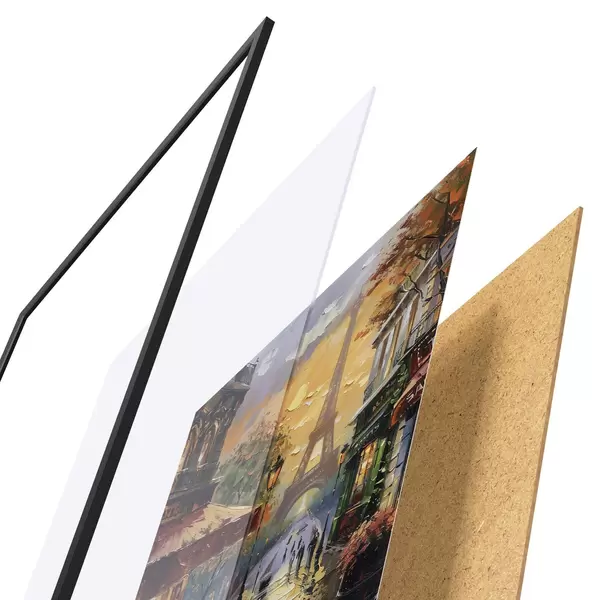 Plakat koosneb raamist, pleksiklaasist, trükitud pildist ja puitlaastplaadist alusplaadist. Tänu tagaküljel olevatele kinnitustele saab plakati kohe seinale riputada.