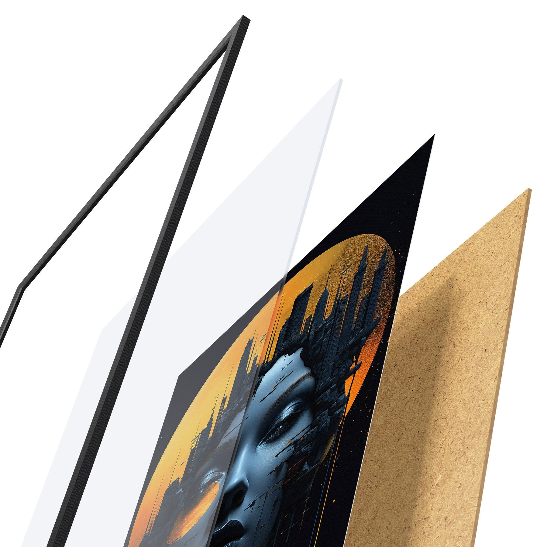 Poster Tüdruku portree abstraktsel linna taustal Nr d00618