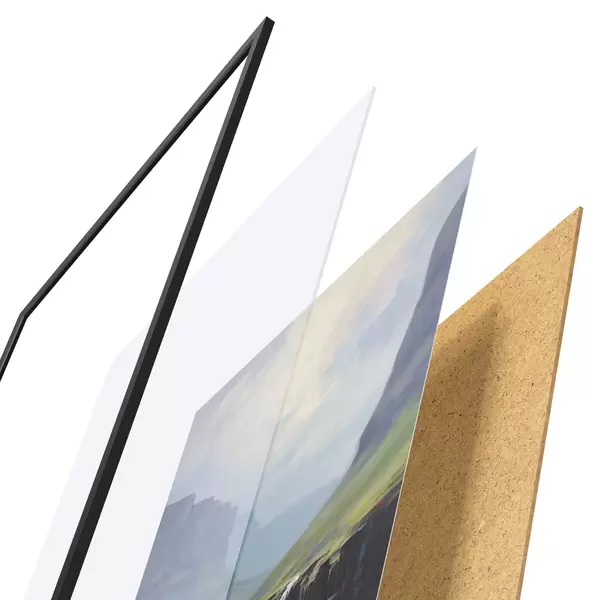 Plakat koosneb raamist, pleksiklaasist, trükitud pildist ja puitlaastplaadist alusplaadist. Tänu tagaküljel olevatele kinnitustele saab plakati kohe seinale riputada.