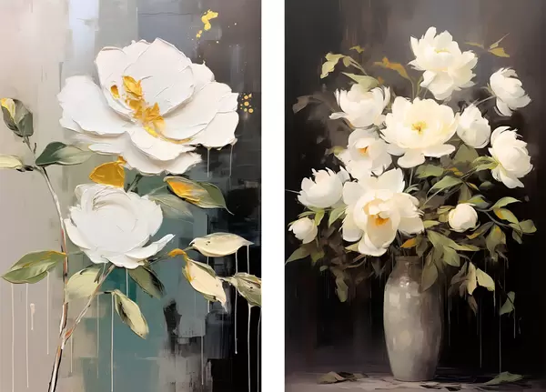Poster Valged pojengid tumedal taustal: dekoratiivne kompositsioon Nr d00634