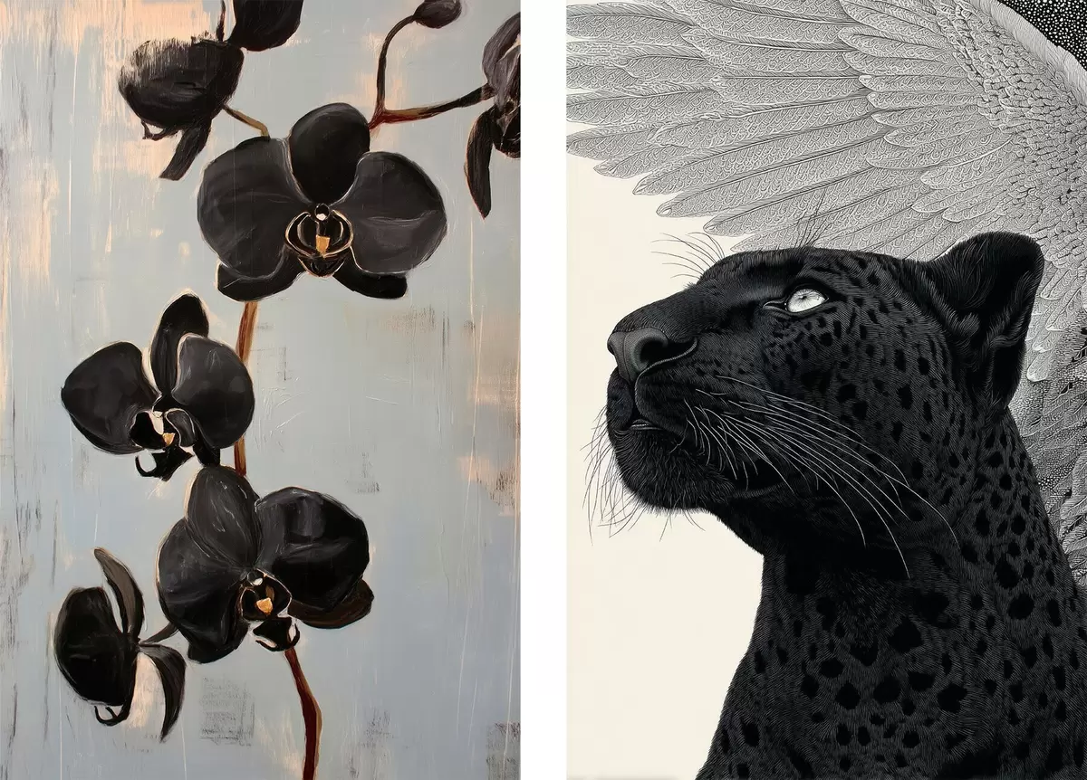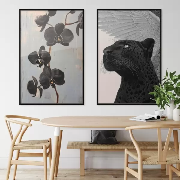 Plakat Tumedad orhideed ja tiibloomad: kunstiline kompositsioon d00640