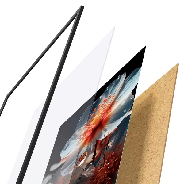 Plakat koosneb raamist, pleksiklaasist, trükitud pildist ja puitlaastplaadist alusplaadist. Tänu tagaküljel olevatele kinnitustele saab plakati kohe seinale riputada.