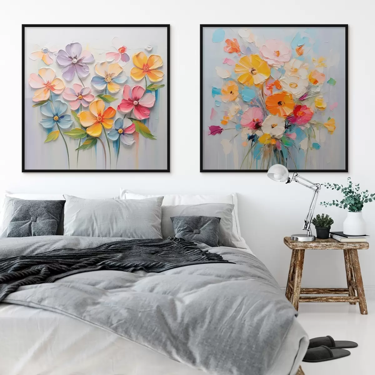 Plakat Abstraktsed heledate lillede kompositsioonid, mis on tehtud impasto tehnikas d00662