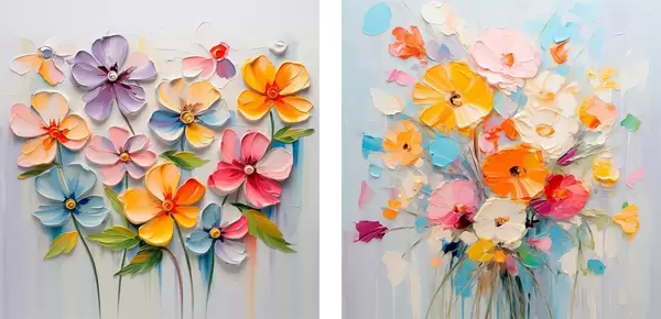 Plakat Abstraktsed heledate lillede kompositsioonid, mis on tehtud impasto tehnikas d00662
