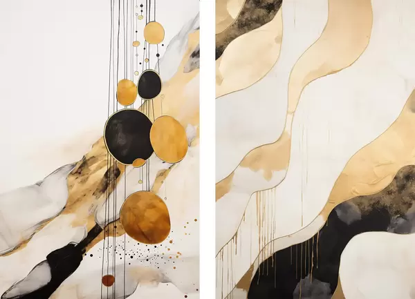 Plakat Abstraktne kompositsioon mustade ja oranžide ringidega d00684