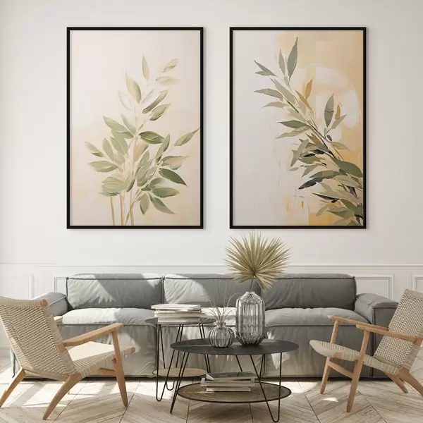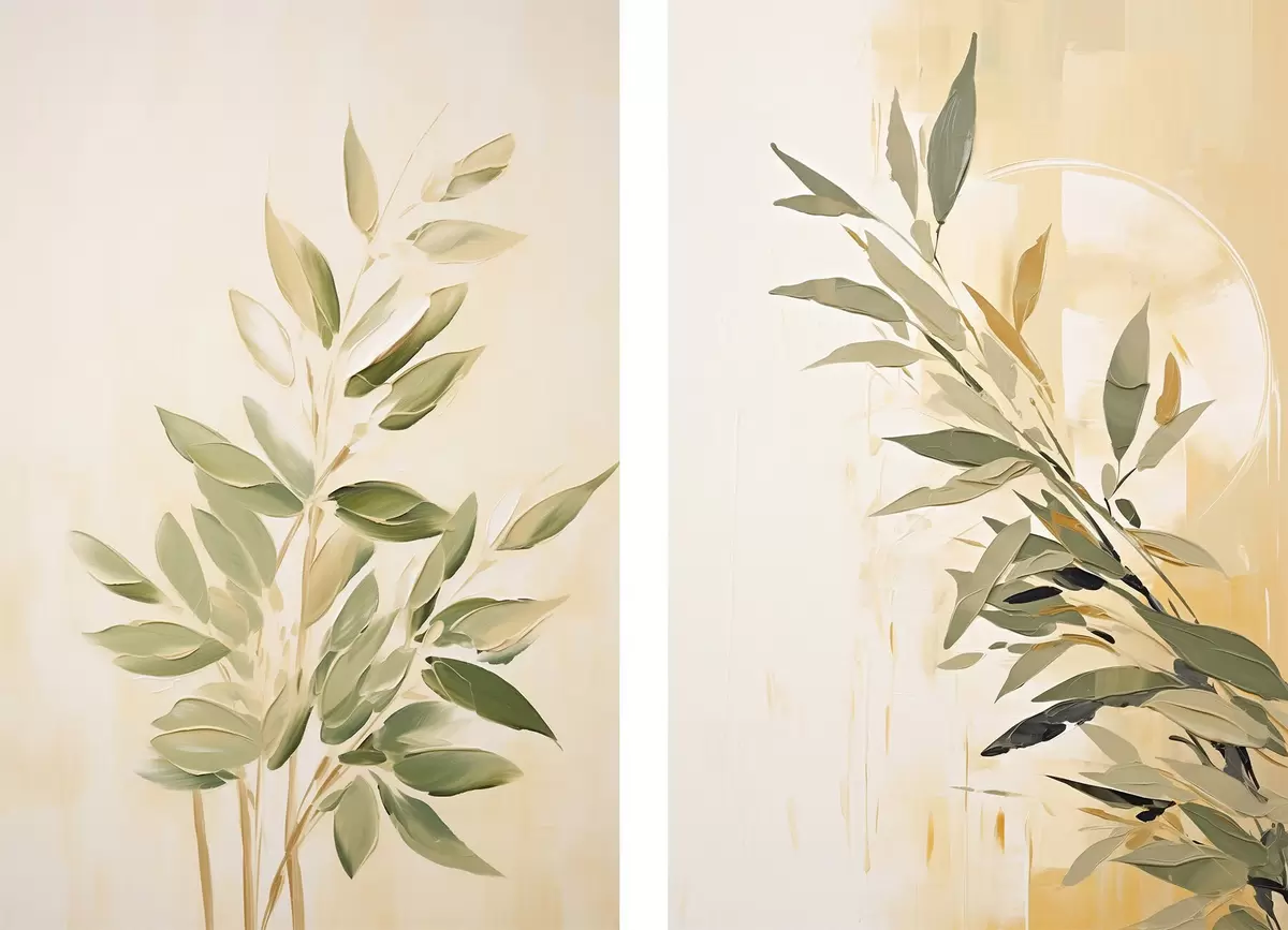 Poster Roheliste lehtedega botaaniline haru soojal taustal Nr d00686
