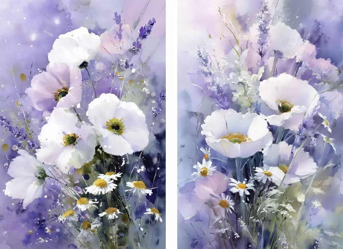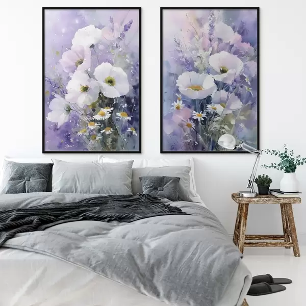 Poster lilla ja valge toonides akvarellikimpp Nr d00704