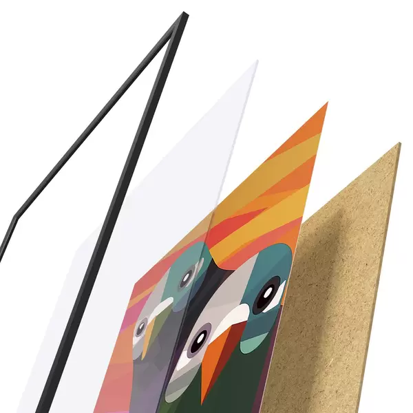 Plakat koosneb raamist, pleksiklaasist, trükitud pildist ja puitlaastplaadist alusplaadist. Tänu tagaküljel olevatele kinnitustele saab plakati kohe seinale riputada.