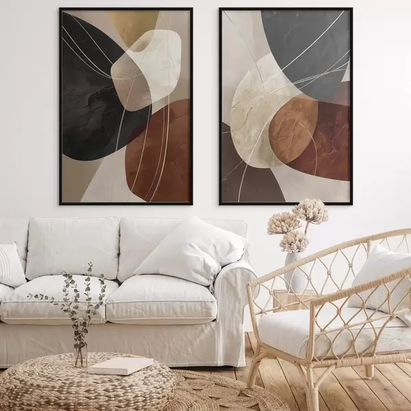 Poster Geomeetrilised ovaalid soojas värvipalettis kollaste joontega Nr d00763