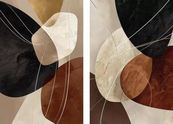Poster Geomeetrilised ovaalid soojas värvipalettis kollaste joontega Nr d00763
