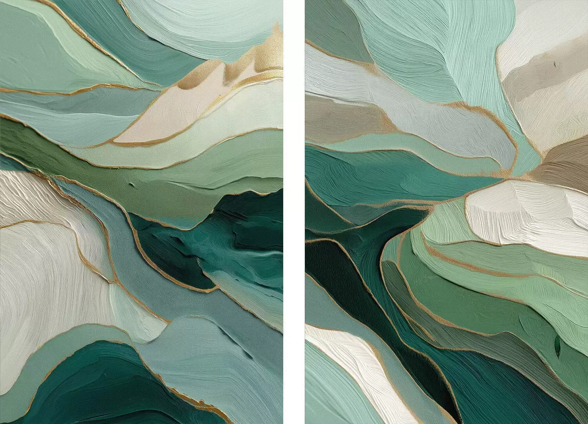 Poster Smaragdroheline kihiline abstraktsioon kollase kontuuriga Nr d00766