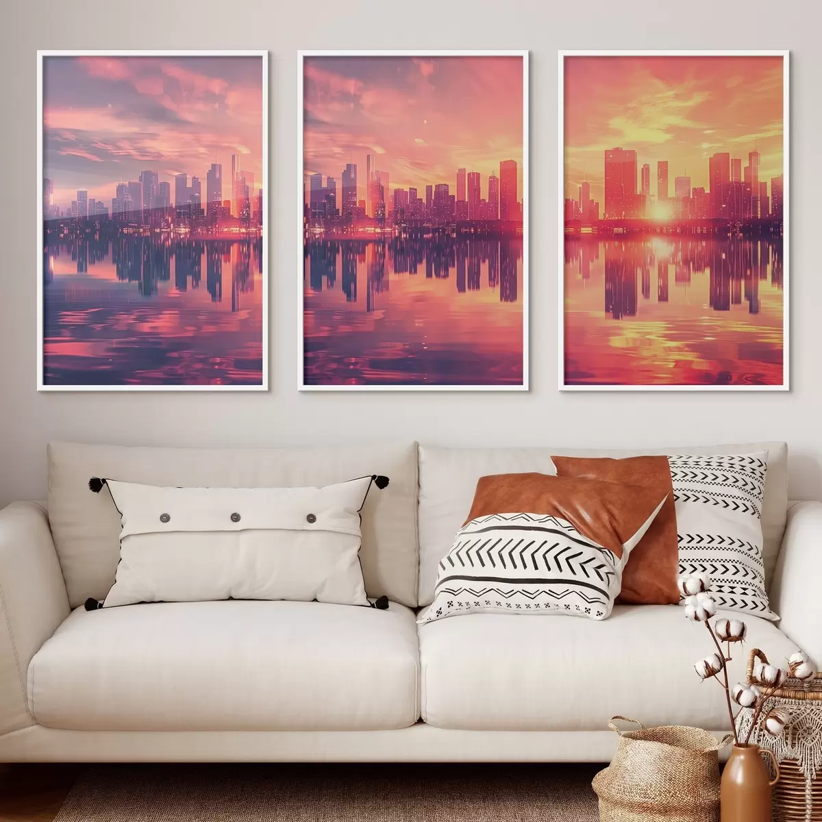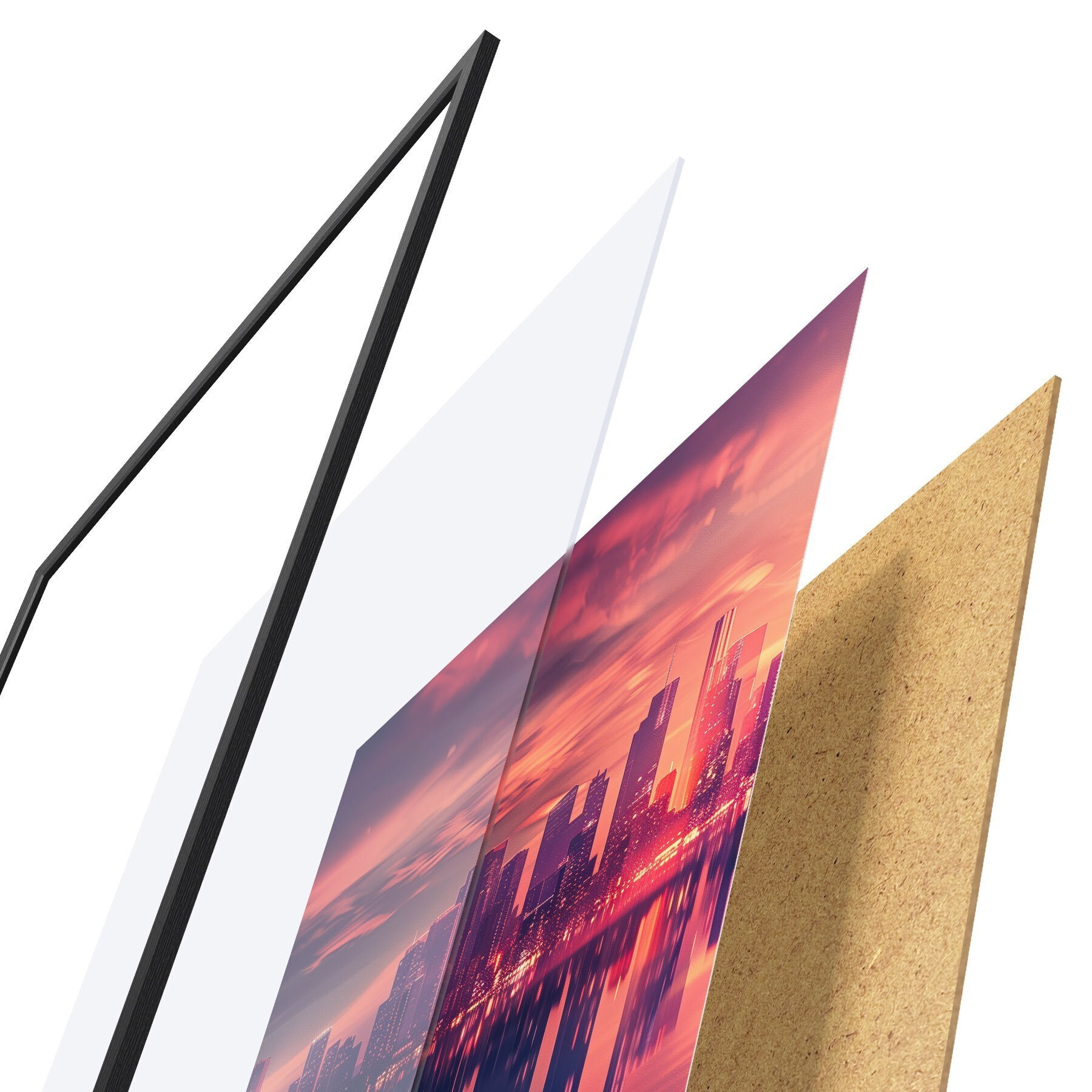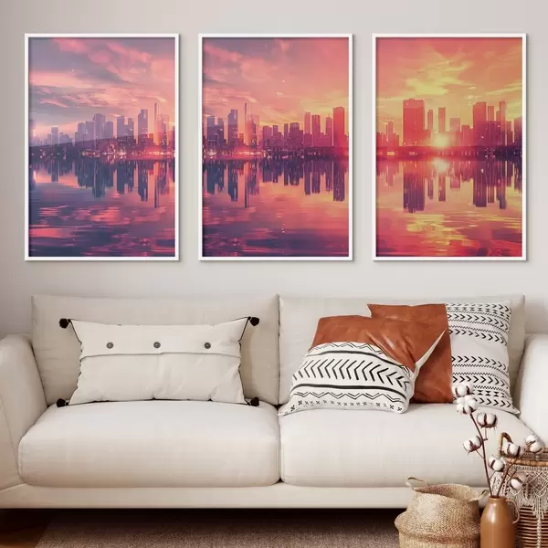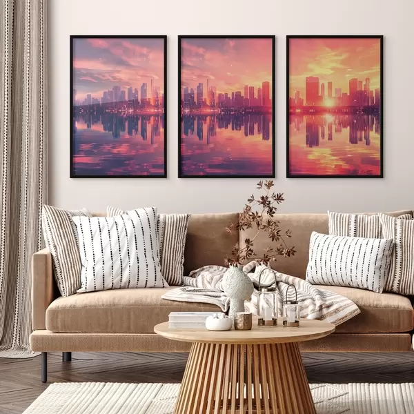 Plakat Romantiline päikeseloojang modernse linna taustal d00784