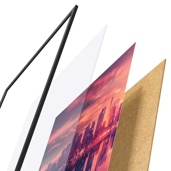 Plakat koosneb raamist, pleksiklaasist, trükitud pildist ja puitlaastplaadist alusplaadist. Tänu tagaküljel olevatele kinnitustele saab plakati kohe seinale riputada.