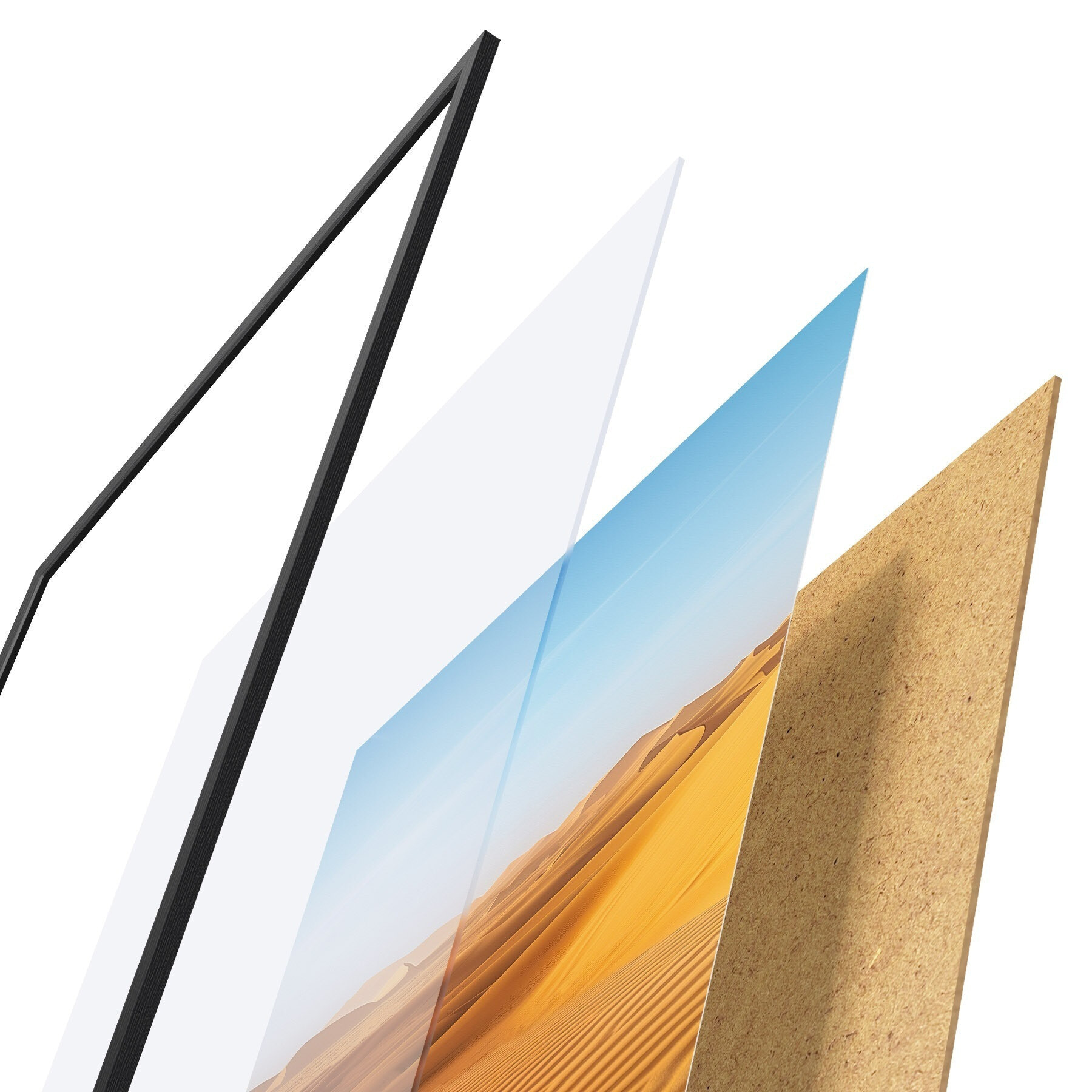 Plakat koosneb raamist, pleksiklaasist, trükitud pildist ja puitlaastplaadist alusplaadist. Tänu tagaküljel olevatele kinnitustele saab plakati kohe seinale riputada.