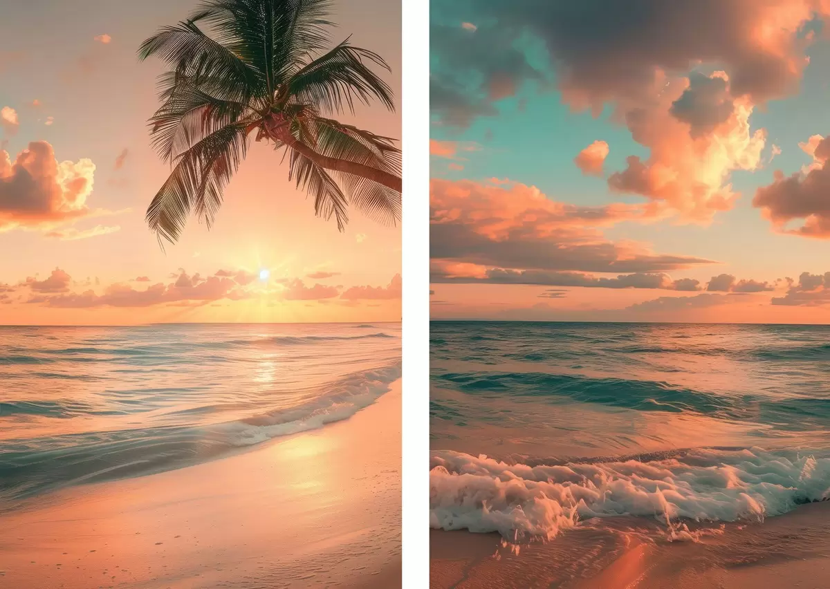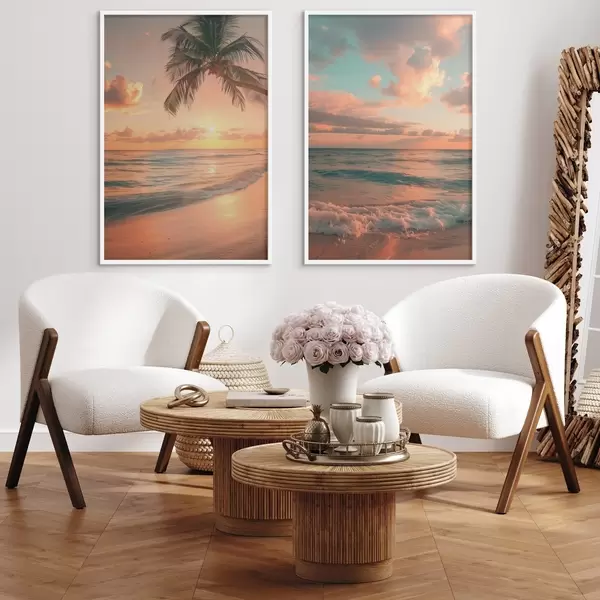 Poster Päikeseloojang mere rannikul koos lainete vaatega Nr d00787