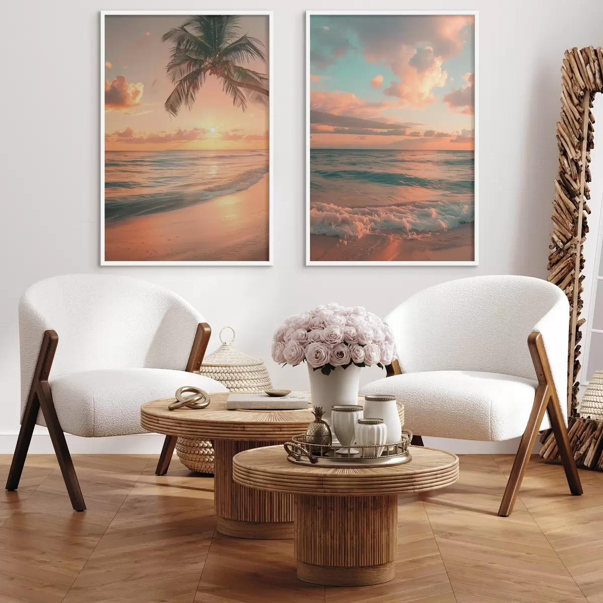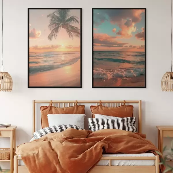 Plakat Päikeseloojang mere rannikul koos lainete vaatega d00787