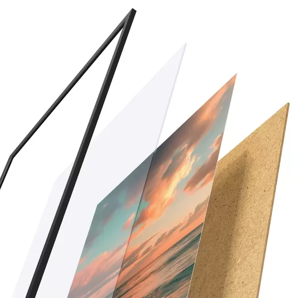 Plakat koosneb raamist, pleksiklaasist, trükitud pildist ja puitlaastplaadist alusplaadist. Tänu tagaküljel olevatele kinnitustele saab plakati kohe seinale riputada.