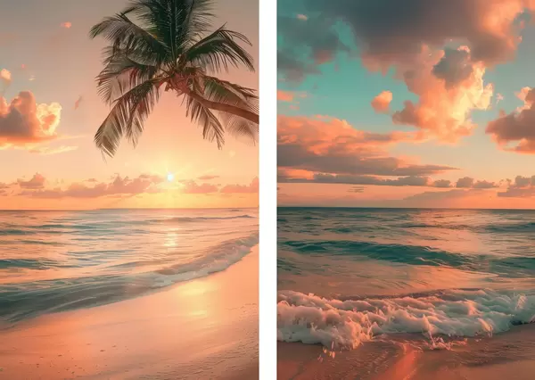 Plakat Päikeseloojang mere rannikul koos lainete vaatega d00787