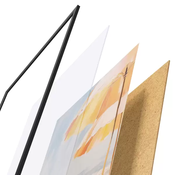 Plakat koosneb raamist, pleksiklaasist, trükitud pildist ja puitlaastplaadist alusplaadist. Tänu tagaküljel olevatele kinnitustele saab plakati kohe seinale riputada.